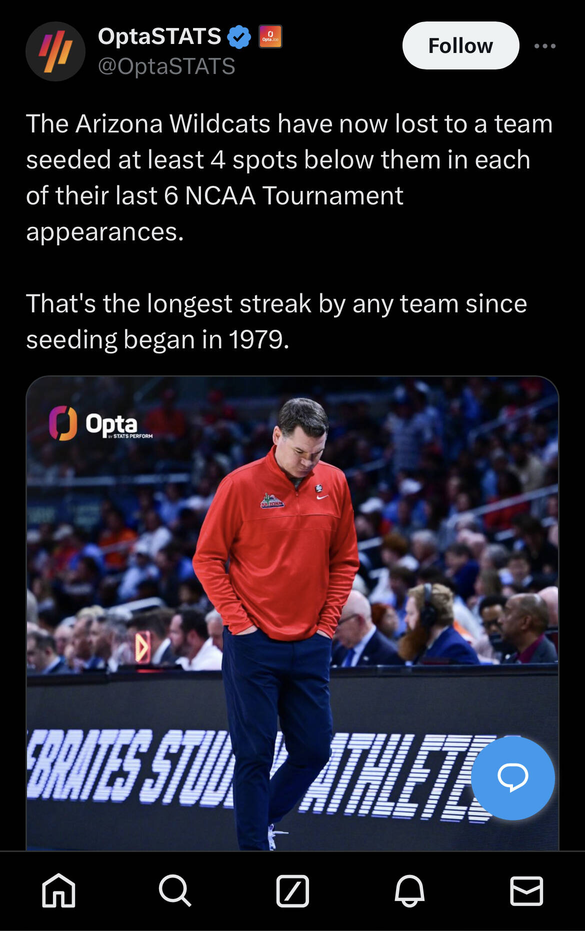 Iowa State fans are unhappy losing as a 2 seed to 3rd seed Illinois, but my goodness imagine the anguish that Zona fans feel pretty much every single tournament.